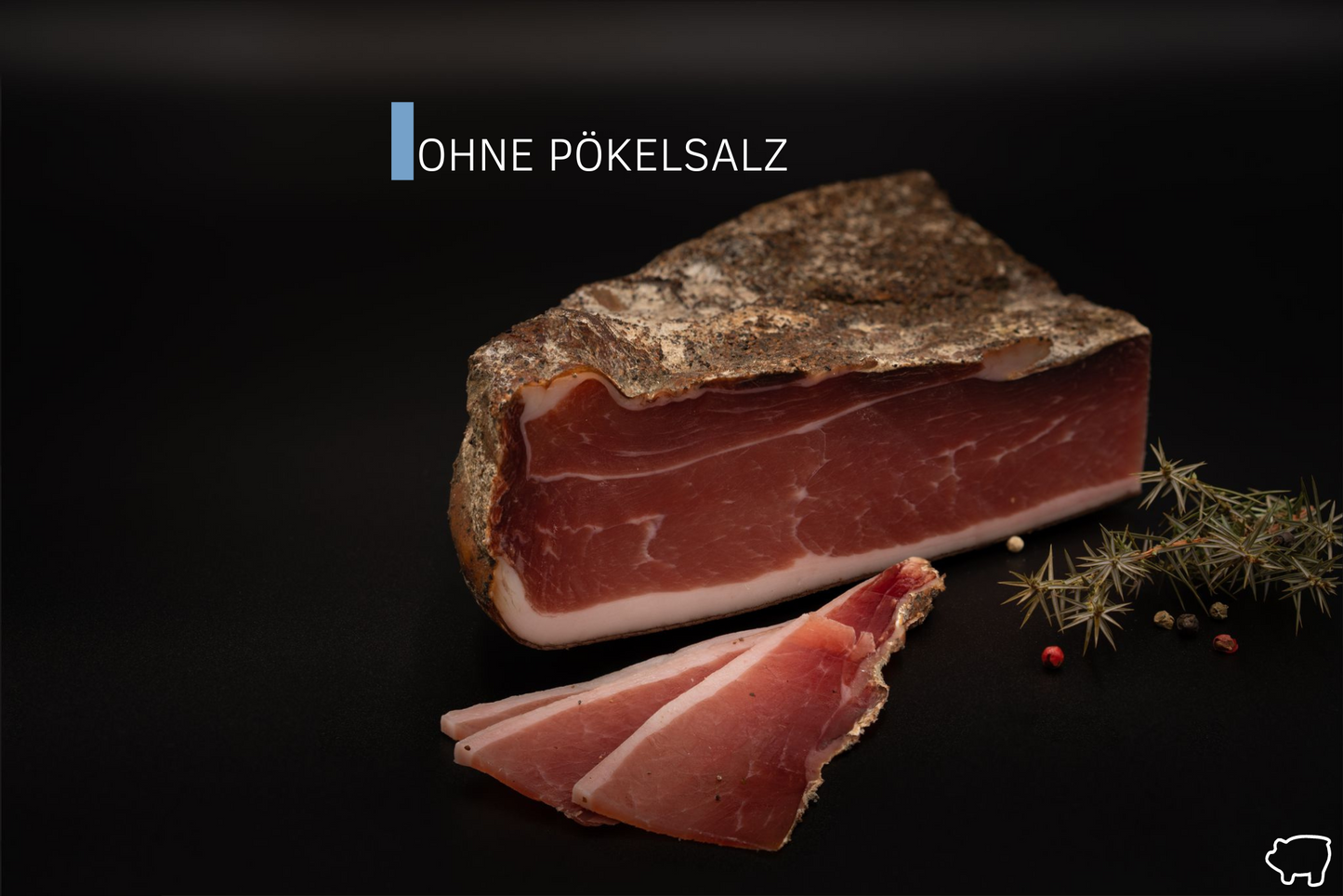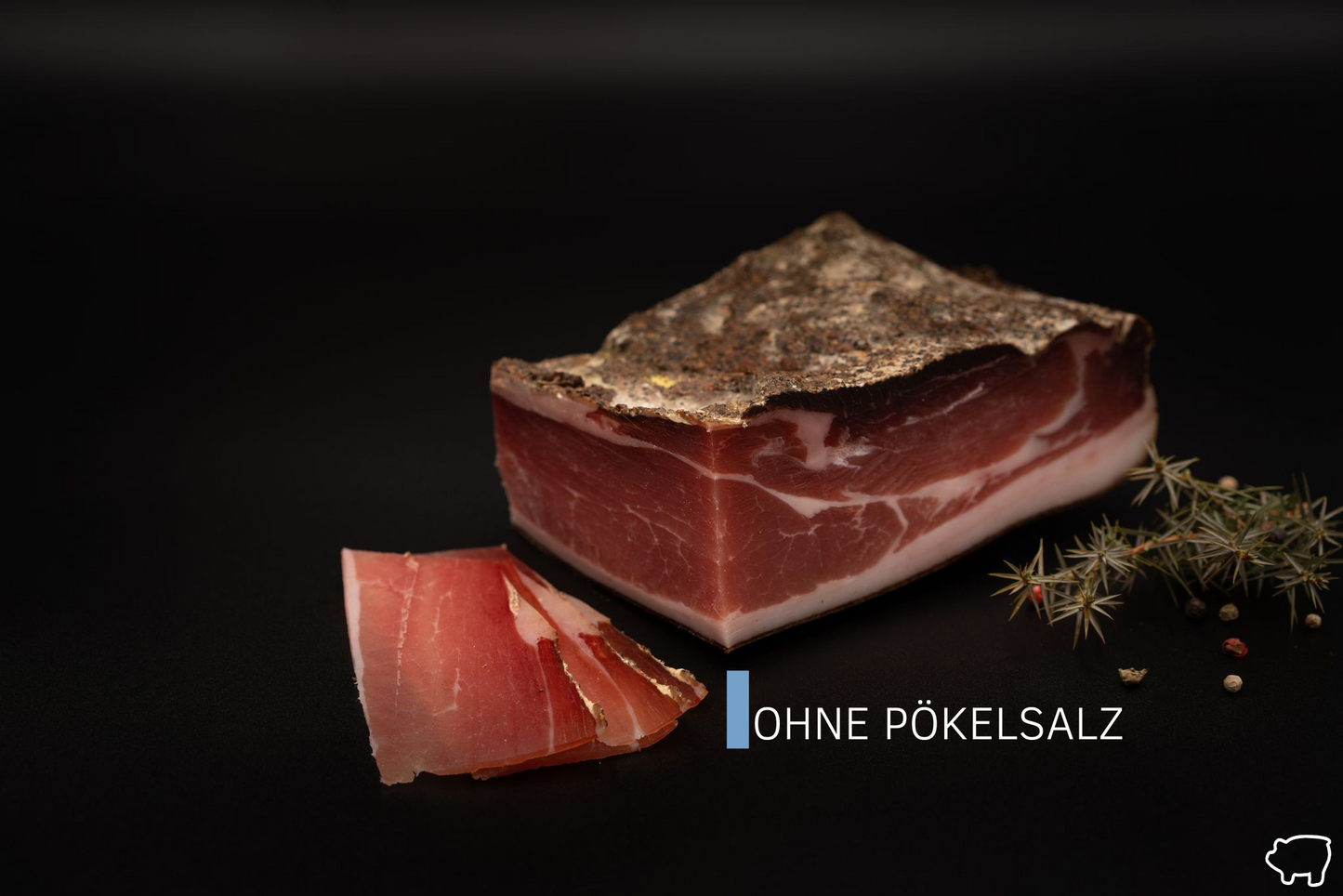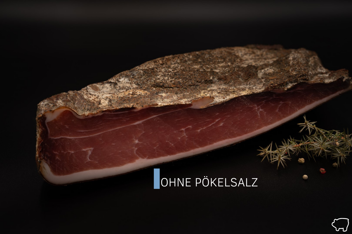 Our Speck Special - without curing salt is an alternative for those who love the traditional taste of bacon, but want to avoid the addition of curing salt. Made from carefully selected pork and natural spices, this product offers the hearty taste of bacon without curing salt.